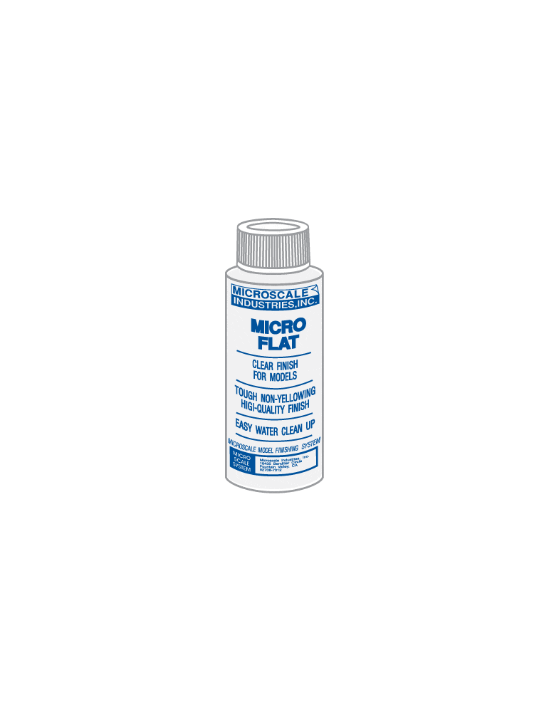 The Micro Coat finishes are more than just a pretty look. This is one tough finish, and a real breakthrough in a modern formulation of water reducible acrylic resin. For models that get a lot of handling this is the answer. Even the Micro Coat Flat and Micro Coat Satin continue to look like new after a great deal of handling. One of the main reasons for the Micro Coat finishes is that they are the ideal way to be sure that your Microscale Decals perform up to their potential for realism. Micro Coat Clear gives you a 'wet look' shine that replicates the new synthetic paint used on the real thing. It is also the answer for a glossy base necessary for decaling. All the Micro Coat Finishes use the same water clear acrylic resin, which is tough and flexible and adheres strongly to paint and plastic. It is rated to last at least twenty years under ordinary conditions, for models this should be forever. You can mix the Micro Coat finishes if you want something in between, and they are water thinable. Though, you should go carefully on the water, it takes only a little. If your water is not completely pure, you may want to use distilled water to maintain the clearness of the finish. Iron and other metals in the water can cause a yellow tint, copper will give a green tint. For clean up before it is completely dry, ordinary warm tap water with a little detergent works great. This product is designed to be airbrushed. If you put 3 inches of water in a bucket beside you while you are spaying you can clean up instantly by removing your paint supply and running water through the air brush by operating in the bucket while immersed in water. This is quick and easy and makes no mess. It is specially handy if your are doing a lot of spraying with time in between. You can use a brush if you desire and all the thinning procedure hold true. Work like you would do for lacquer, use single strokes in one direction and feather lightly. Do not brush in or you will leave brush strokes. There are times in touch up or detail work where you must know this technique so it is a good one for everyone to learn.