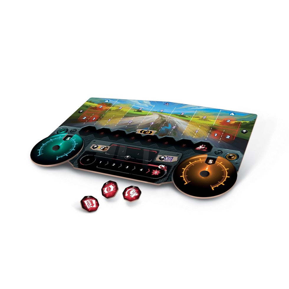 At the start, each player holds five basic action cards along with five unique pilot cards. As the race unfolds, participants will acquire additional action cards to fine-tune their vehicles, adjust dampers, check tire pressure and geometry settings, or modify the active differential. Dice rolls determine each driver's ability to execute these actions, enhancing their chances of maintaining control on the challenging tracks.